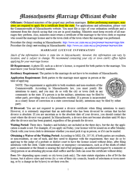 • Guide to state and local laws in the jurisdiction(s) where you'll perform weddings;