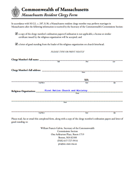 Images shown are examples only, and represent the documents included with the Massachusetts ordination package. Packages for other states will include the appropriate documents and forms for that jurisdiction.